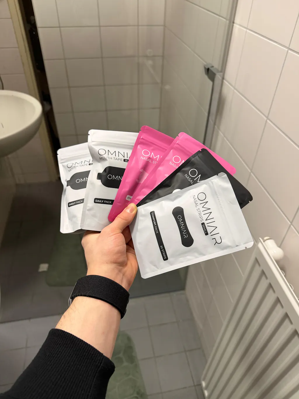 Onze neusstrips zijn kleine, flexibele strips die je over de neusbrug plaatst. Ze helpen de neusgaten te openen door lichte druk uit te oefenen, wat zorgt voor een betere luchtstroom en het ademen gemakkelijker maakt, zowel tijdens het sporten als tijdens het slapen.